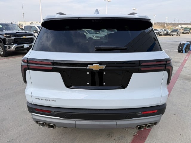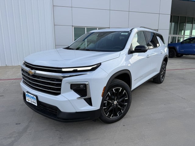Contact Brown Chevrolet Buick GMC of Eagle Pass today for information on dozens of vehicles like this 2026 Chevrolet Traverse FWD LT. This Chevrolet includes: Optional Equipment: Safety and Security Rear Camera Mirror video-feed rearview mirror Front mounted camera Right side camera Traffic Sign Recognition Left side camera HD Surround Vision aerial view camera Rear Pedestrian Alert rear pedestrian detection warning Convenience Auto-dimming rear view mirror Vinyl/rubber cargo mat 1 interior 120V AC power outlet Keycard activated door locks 0.150 kW Exterior and Appearance Tri-coat paint 20 x 8-inch front and rear machined w/painted accents aluminum wheels P255/55SR20 AS BSW front and rear tires First and second-row sliding and tilting glass sunroof with express open/close activation sunshade Front license plate bracket Tires & Wheels 255/55R20 AS BW Tires P255/55SR20 AS BSW front and rear tires 20 Carbon Flash Metallic Aluminum Wheels 20 x 8-inch front and rear machined w/painted accents aluminum wheels Exterior Power Dual Glass Panoramic Sliding Sunroof First and second-row sliding and tilting glass sunroof with express open/close activation sunshade Front License Plate Mounting Package Front license plate bracket Black Bowtie Additional Options Driver Confidence Package Auto-dimming rear view mirror Rear Camera Mirror video-feed rearview mirror 1 interior 120V AC power outlet Front mounted camera Right side camera Traffic Sign Recognition Left side camera HD Rear Vision Camera rear camera with washer Keycard activated door locks HD Surround Vision aerial view camera Rear Pedestrian Alert rear pedestrian detection warning 0.150 kW Preferred Equipment Group 1LT Sun and Wheel Package First and second-row sliding and tilting glass sunroof with express open/close activation sunshade Power Outlet 1 interior 120V AC power outlet 0.150 kW Interior Integrated Cargo Liner Vinyl/rubber cargo mat Rear Camera Mirror Auto-dimming rear view mirror Rear Camera Mirror video-feed rearview mirror Rear Pedestrian Alert Rear Pedestrian Alert rear pedestrian detection warning HD Surround Vision Front mounted camera Right side camera Left side camera HD Rear Vision Camera rear camera with washer HD Surround Vision aerial view camera Traffic Sign Recognition Traffic Sign Recognition Jet Black Key Card Keycard activated door locks Fuel Economy and Emissions Federal emissions Paint Polar White Tricoat Tri-coat paint Emissions Federal Emissions Requirements Federal emissions *Note - For third party subscriptions or services, please contact the dealer for more information.* Want more room? Want more style? This Chevrolet Traverse FWD LT is the vehicle for you. Today's luxury vehicle is not just about opulence. It's about a perfect balance of performance, comfort and attention to detail. This 2026 Chevrolet Traverse FWD LT is the perfect example of the modern luxury. This is the one. Just what you've been looking for.